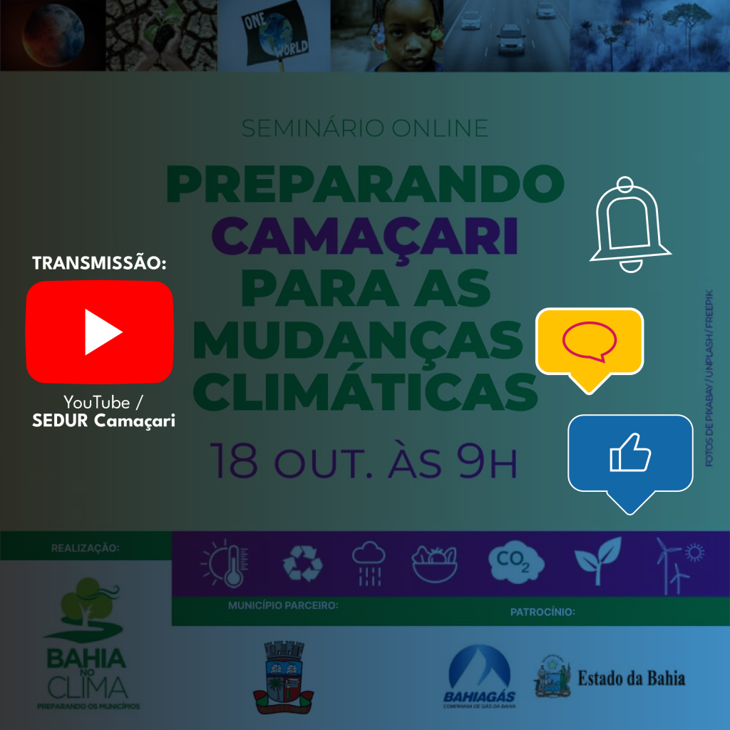 Com o intuito de encontrar caminhos de adaptação para as mudanças climáticas, Camaçari participará nesta terça-feira (18/10), das 9h às 12h, de mais um ciclo de debates on-line, desta vez com base na temática: Preparando Camaçari para as mudanças climáticas.