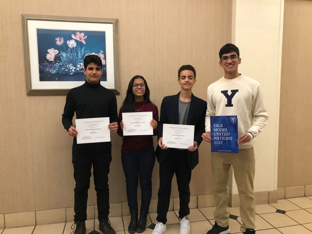 Ana Caroline Oliveira dos Santos, 16, 2º ano do Colégio Estadual João Pessoa, de Itaquara; Gustavo de Jesus Souza Batista, 17, concluinte em 2022 do Colégio Estadual Edvaldo Brandão Correia, Salvador; e Ted Martins Paulo da Silva, 16, concluinte em 2022 do Colégio Estadual Professor Rocha Pita, em Aratuípe, viajaram desde a semana passada para um outro evento, também nos EUA, a Yale Model United Nations (YaleMUN) – conferência que visa debater questões globais complexas entre estudantes do Ensino Médio de todo o mundo. A YaleMUN, que aconteceu entre 19 e 22 de janeiro, foi criado por alunos da Yale University, terceira instituição privada americana de Ensino Superior mais antiga dos EUA, situada em New Haven.