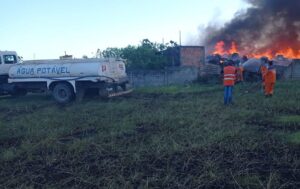 A Prefeitura de Camaçari montou uma força tarefa para atuar no combate ao incêndio de grande proporção que atingiu um depósito de materiais reciclados nesta
