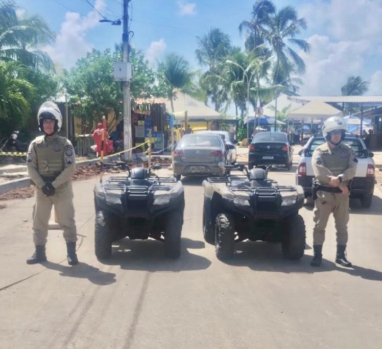 A Polícia Militar da Bahia, por meio do 59ª CIPM, Unidade vinculada ao Comando de Policiamento da Região Metropolitana, intensificou o policiamento nas praias da orla de Camaçari utilizando quadriciclos, veículos estes que poderão atender as ocorrências tanto na área da praia, quanto nas proximidades da orla em menor tempo.