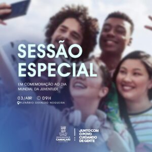 Acontece, na quarta-feira (03/04), a partir das 9h, no plenário da Câmara de Camaçari, a Sessão Especial em Comemoração ao Dia Mundial da Juventude, comemorado