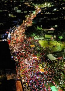 O candidato a prefeito de Camaçari, Luiz Caetano (PT), e o governador Jerônimo Rodrigues (PT), reuniram mais de 20 mil apoiadores na Mega Caminhada da