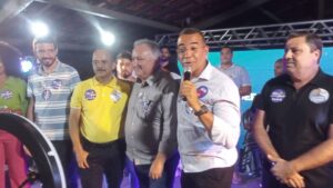 O prefeito de Camaçari, Elinaldo Araújo (União Brasil), participou nesta terça-feira (30/8) do comício do correligionário e candidato ao Governo da Bahia, da coligação “Para