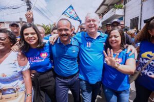 Animação foi o que não faltou ao prefeito de Camaçari, Elinaldo Araújo (União Brasil), durante a caminhada política em apoio ao candidato a governo do