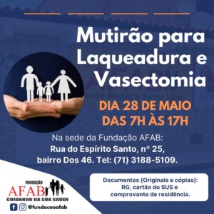No dia 28 de maio, Camaçari receberá triagem para cirurgias oftalmológicas – catarata, descolamento de retina, glaucoma e pterígio – bem como de vasectomia e