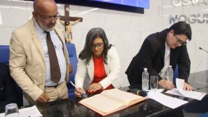Com o plenário Osvaldo Nogueira lotado de apoiadores, a vereadora Nedinha (PT) tomou posse, na manhã desta sexta-feira (17/01), como 2ª suplente da Câmara Municipal
